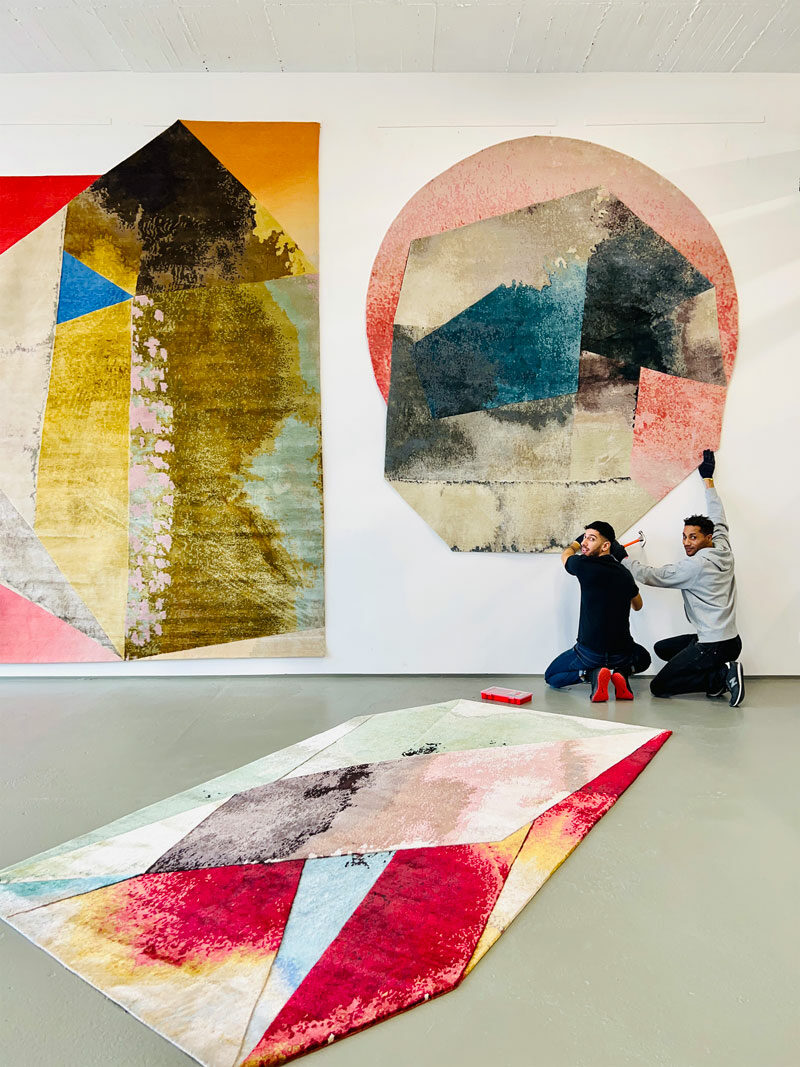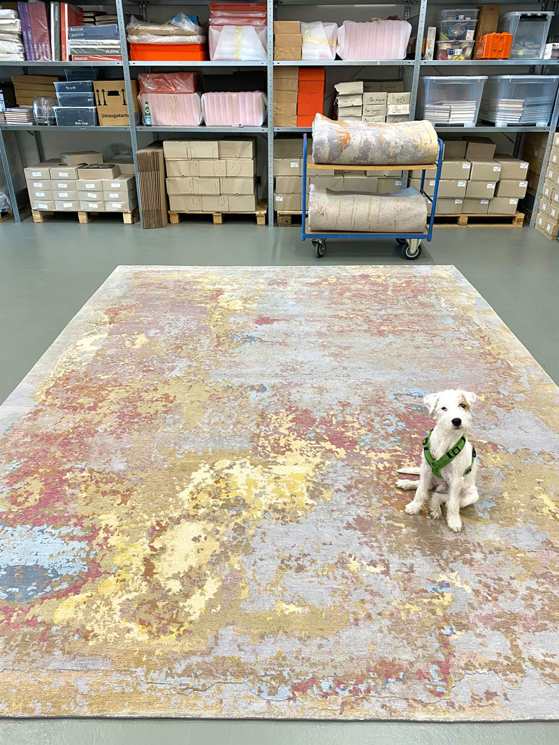 In the past 15 years, I have developed roughly 1.400 different designs, all of which are still available. We set up an archive of designs, the printed paper knotting instructions, the dyed wool specimens, and small samples in digital as well as physical form. Diversity is one of the mantras of my work. I never wanted to tie us to one specific style; that never interested me. I’m fascinated by the varied lifestyles of my customers. I see myself as the service provider who helps the customer to find the right product with the matching design. Traditionally, the year begins for us at Domotex in Hanover, which is still the world’s largest trade fair for floor coverings. I sometimes describe myself as a child of Domotex because we have exhibited there for fourteen years and because we forged most of our international contacts through this trade fair. We generally display two new collections there each year: one that focuses on innovative textures and techniques and a collection with new, narrative images and colors. As such, it is the framework of our endeavors for a year. It is a challenge to amaze the public again and again over so many years, to remain innovative, and to constantly have a finger on the pulse of the market. However, we seem to be pretty good at it, and that is where the company’s strength lies. We have no difficulty in seeing and understanding market trends. We also help shape them, which is hugely enjoyable.