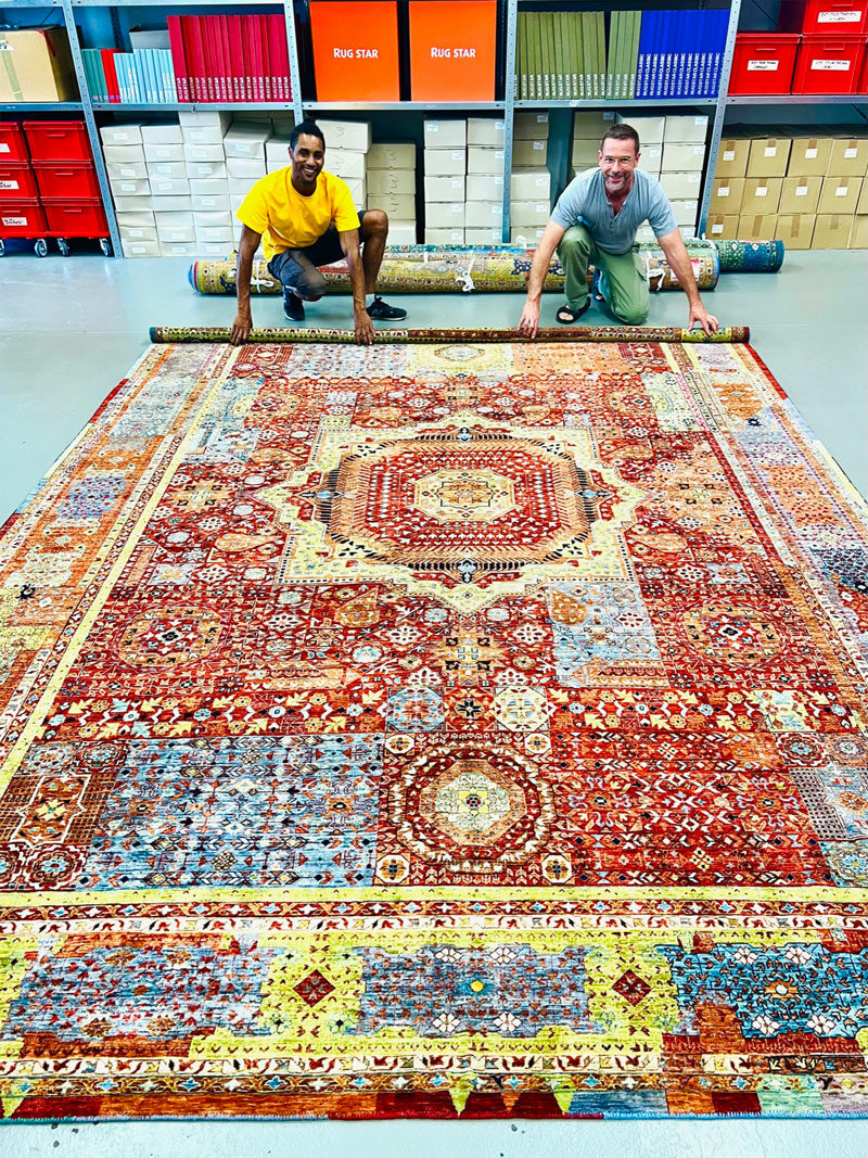 The fusion of Dahlmanns’ architectural background, his love for hand-knotted Tibetan and Persian rugs, and his unwavering dedication have propelled RUG STAR to new heights. The brand’s rugs, crafted in the majestic Himalayan mountains, the vibrant deserts of Rajasthan, and the picturesque valleys of Afghanistan, reflect the culmination of his artistic vision and commitment to quality.
