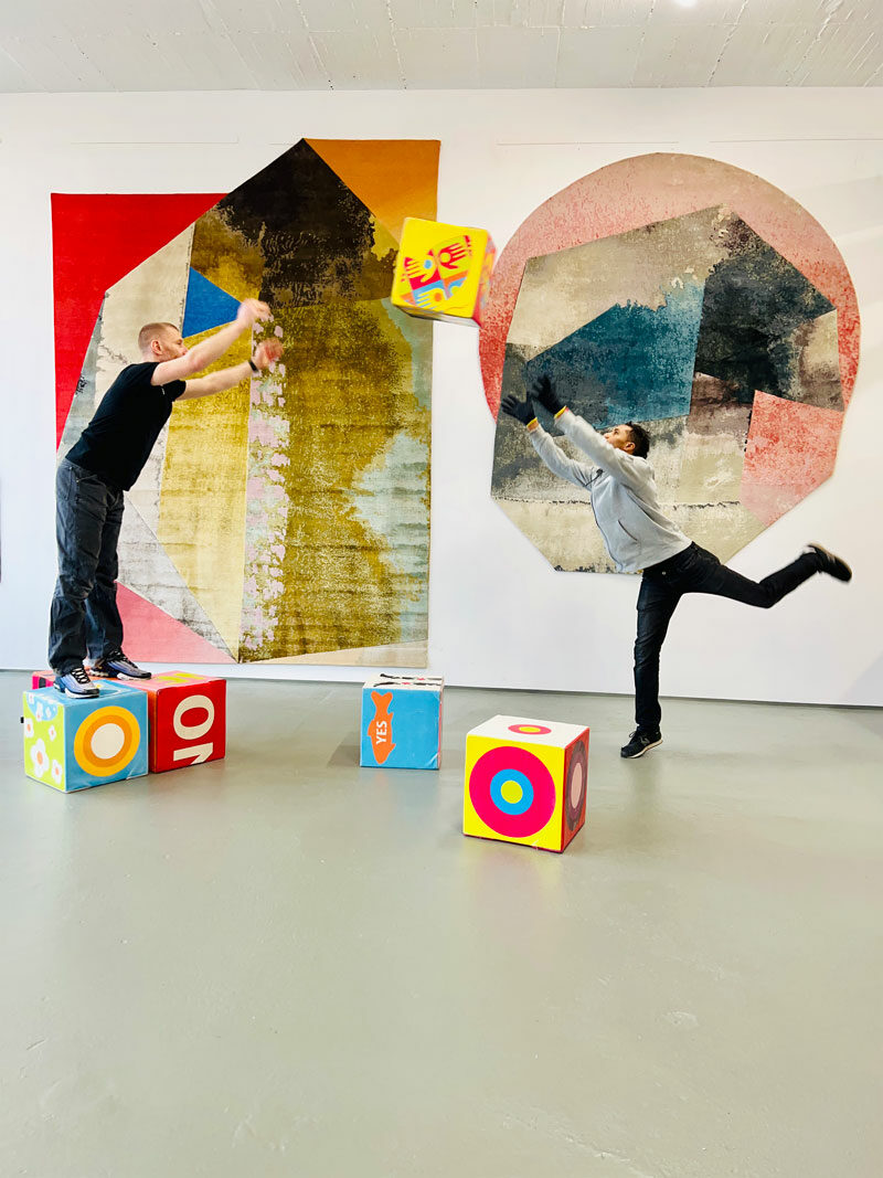 Now, I must share a unique experience we had during this project. There was a particular moment when we decided to place a 35 kg heavy rug over our heads and jump as high into the air as possible. It was a surreal feeling, defying gravity and the weight of the world, as we embraced the freedom and joy that creativity brings. In those fleeting moments, we found a release from the worries and uncertainties of the pandemic, transcending the limitations imposed upon us. It was a celebration of resilience and a testament to the power of the human spirit.