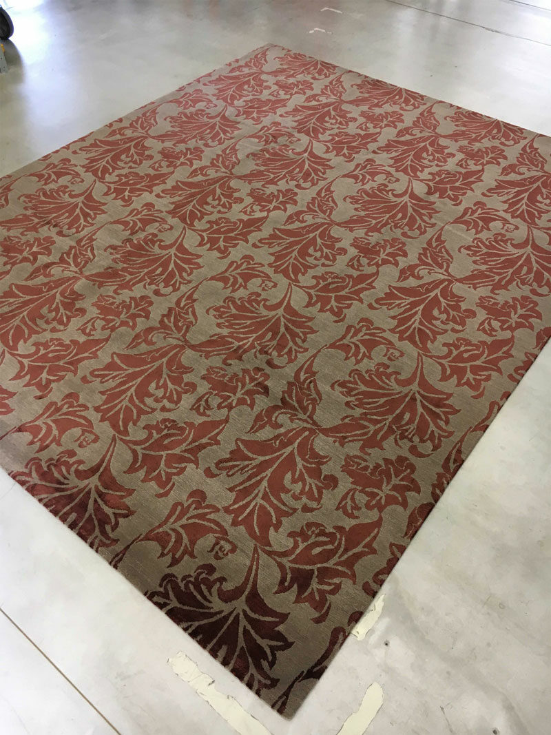 Our contemporary modern rug is produced in Kathmandu, Nepal, as a hand-knotted Tibetan weave in 100-knot quality in a mix of Tibetan highland wool and the finest Chinese silk. The surface is beautifully hand-trimmed to one-level pile height.