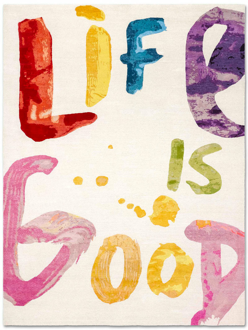 First created 18 years ago, the LoveMessage became one of RUG STAR’s iconic collections. It all started with a white sheet, and a lovely, very young lady wrote with her first abilities to write the following words: Life is good. That became a guiding sentence for our company and inspired us to the first LoveMessage designs, where we used our handwriting. Life is Good; I love you; I am thinking of you all day long… The end writings are all produced in Nepal with the best Tibetan wool and finest Chinese silk.