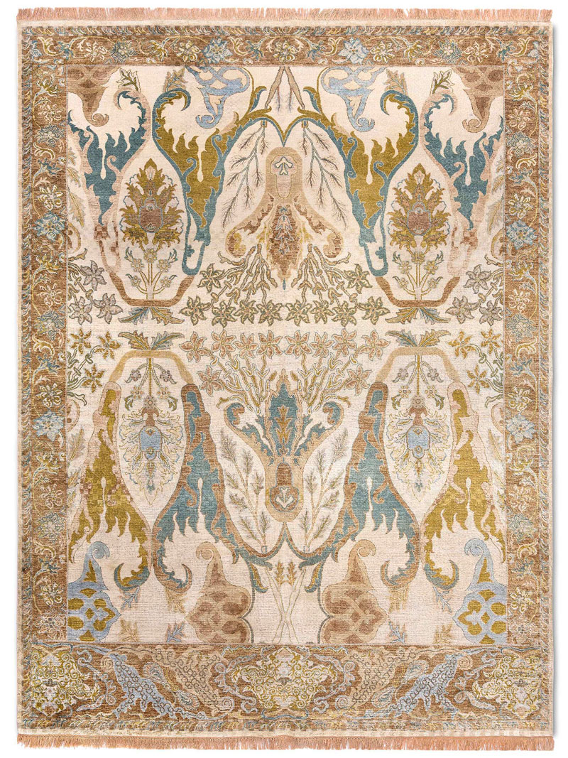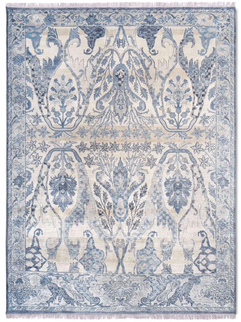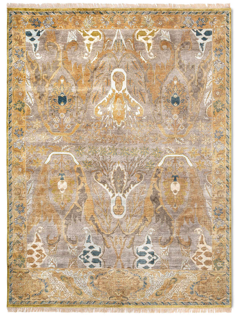 The introduction of this new texture pushes the boundaries of luxury in hand-knotted Persian rugs to new heights. By incorporating carefully selected color combinations and subtly incorporating contemporary elements into traditional designs, we seamlessly blend the beauty of heritage with our urban and modern interior concepts. Indulge in opulence as you embrace the captivating allure of these extraordinary historical patterns, elevated by the fresh and lavish silk surface.
